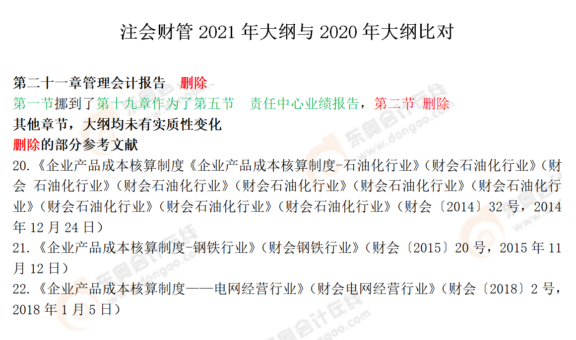 注會考試大綱是考生備考必不可少的學習資料之一,2021年注會考試大綱已經公布,今年的考綱發(fā)生了哪些變化呢?東奧小編為大家整理了各科目考綱變化對比,快來了解一下吧!