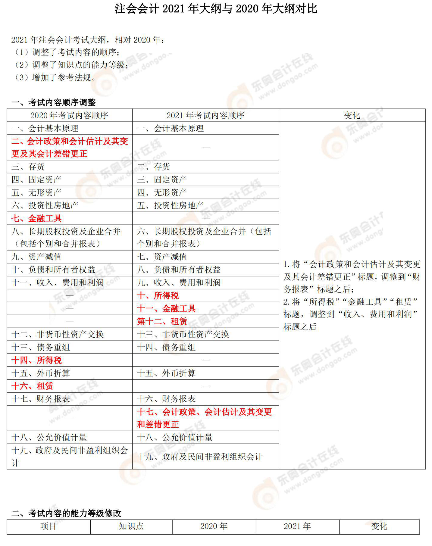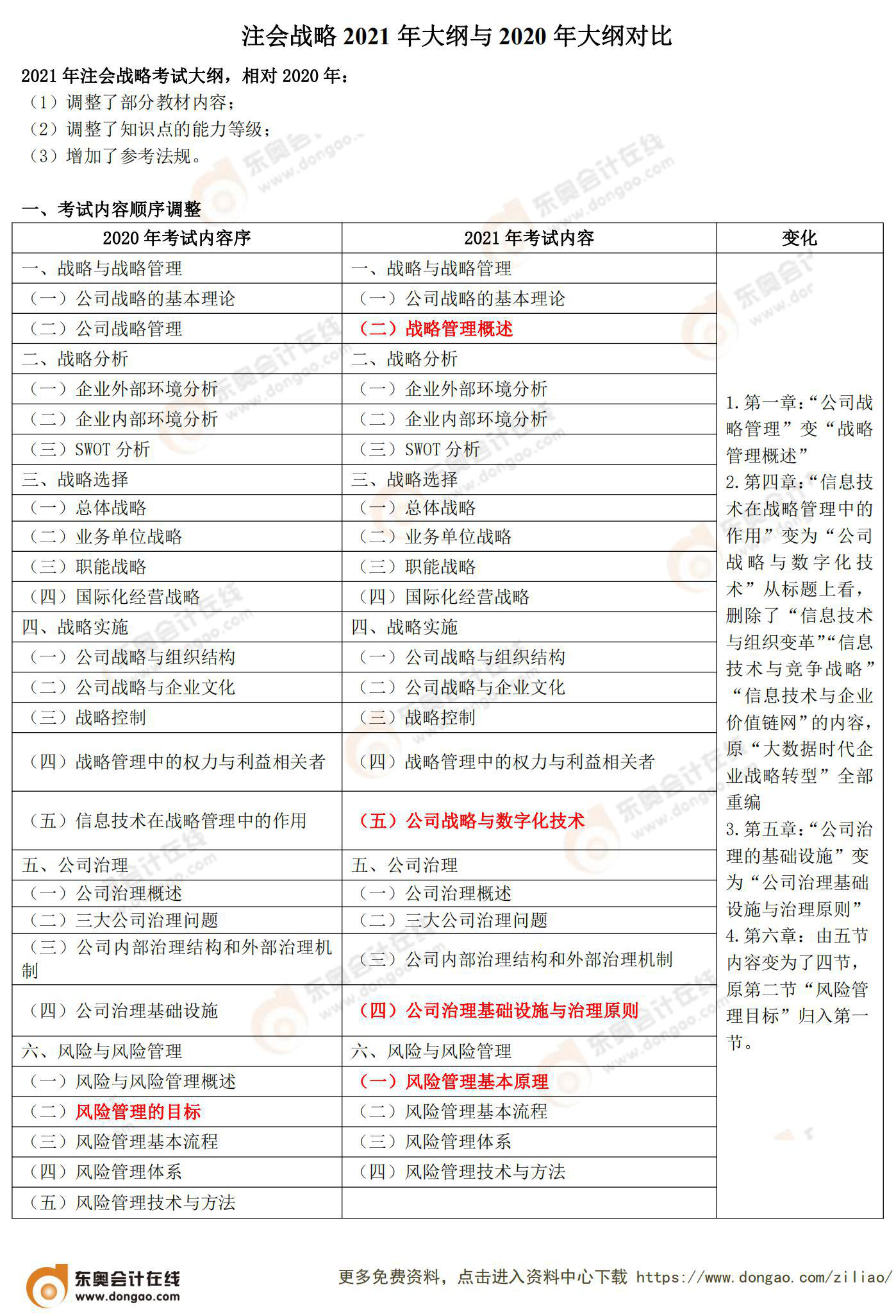 說明:因考試政策、內容不斷變化與調整,東奧會計在線提供的以上注會考試大綱變化對比等信息僅供參考,如有異議,請考生以權威部門公布的內容為準!