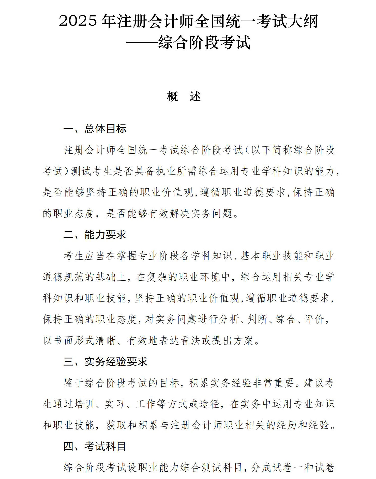 2025年注會綜合階段考試大綱現(xiàn)已公布!快來了解!