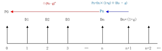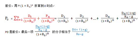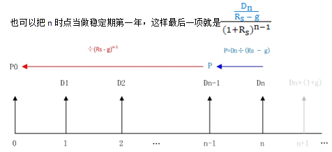 做法:把n+1年當(dāng)做穩(wěn)定期第一年。n+1年的股利是Dn×(1+g),根據(jù) | |