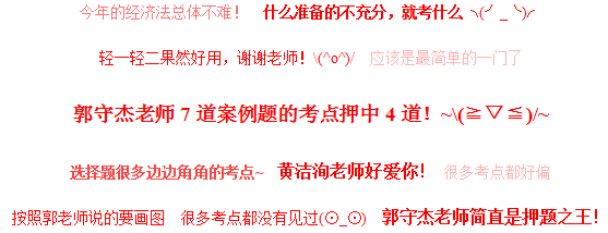 4、經(jīng)濟(jì)法考完,學(xué)員們?cè)谡搲锛娂姾迷u(píng),夸郭守杰老師是押題之王!7道案例題的考點(diǎn),郭老師押中四道!