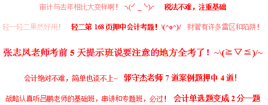shalaku:在這里,我要特別感謝范永亮老師,張志鳳老師,劉穎老師,唐寧老師,感謝你們開啟了我對注冊會計師的了解和興趣。