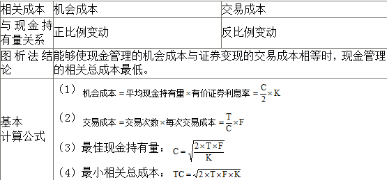 最佳現(xiàn)金持有量是使上述三項(xiàng)成本之和最小的現(xiàn)金持有量。 |