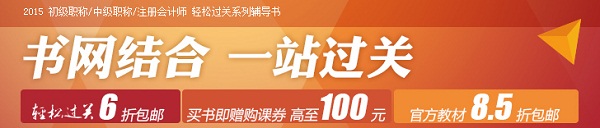 溫馨提示:購買2015注會《輕松過關一》、《輕松過關二》輔導書,買1本贈40元購課券,買2本送80元,教材8.5折包郵哦!