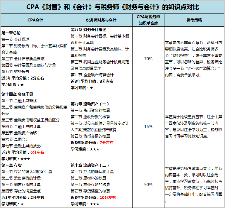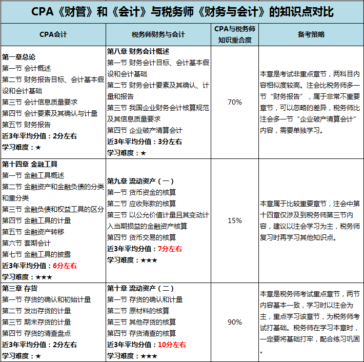 注冊會計師與稅務(wù)師的知識對比:會計、財管相似度高達90%!