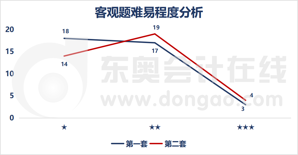 在注會經(jīng)濟(jì)法考試中,第一套試卷和第二套試卷考點主要集中在一星和二星難度,三星難度考題較少。第一套試卷在中,一星考點18道,二星考點17道,三星考點最少,共計3道;第二套試卷中,一星考點14道,二星考點最多最多,共計19道,三星考點最少,共計4道。