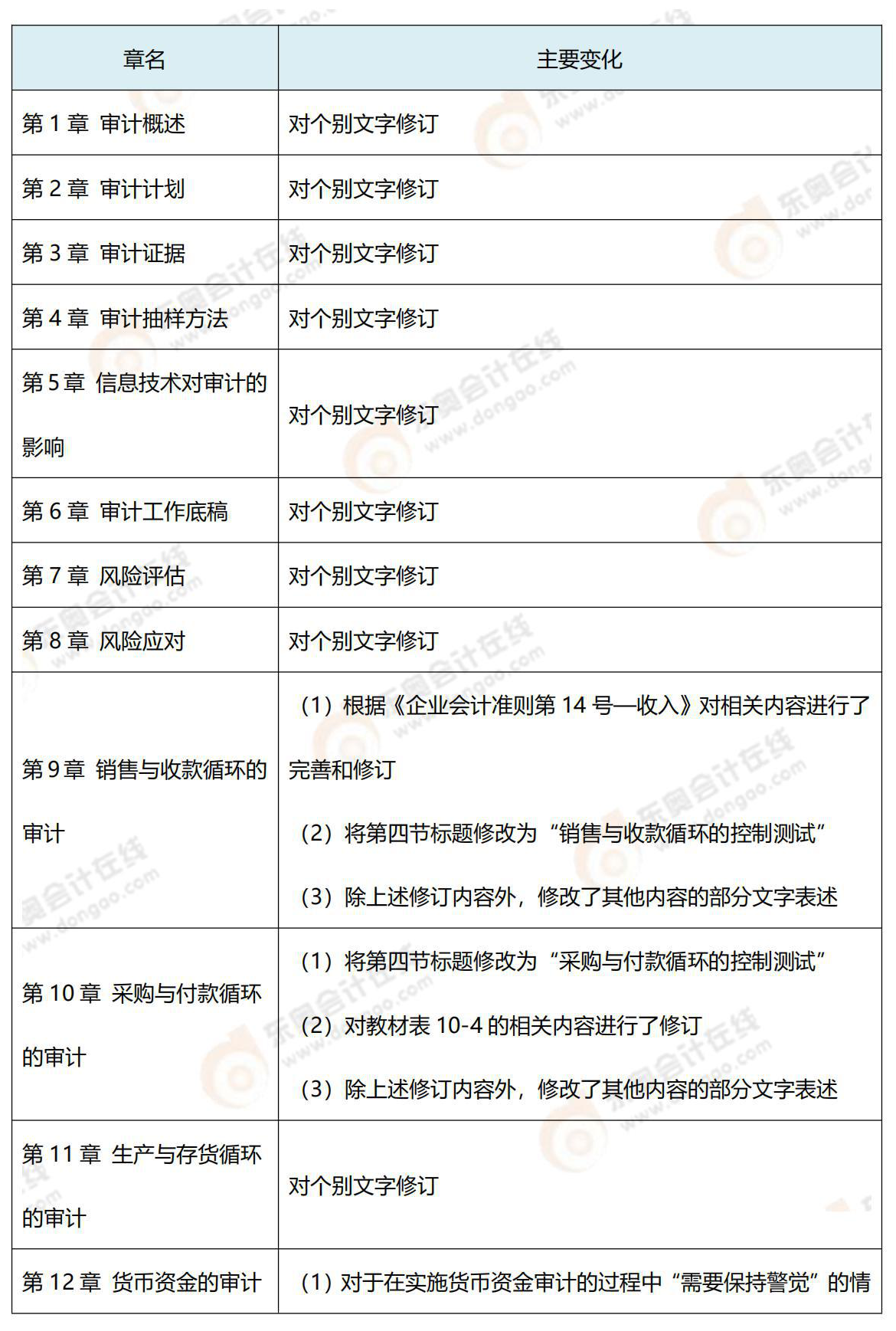 《審計》變化約40%,前8章的理論知識沒變,17章之后內(nèi)容有根本性改變。