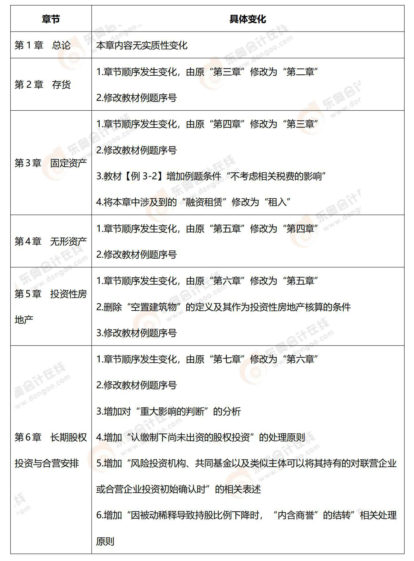 《會計》變化約30%,部分知識點增加或刪減合并,變化較為瑣碎。好消息是章節(jié)順序進行調(diào)整,壞消息是變動主要集中在大章節(jié),例如長期股權(quán)投資、收入、合并財務(wù)報表等。