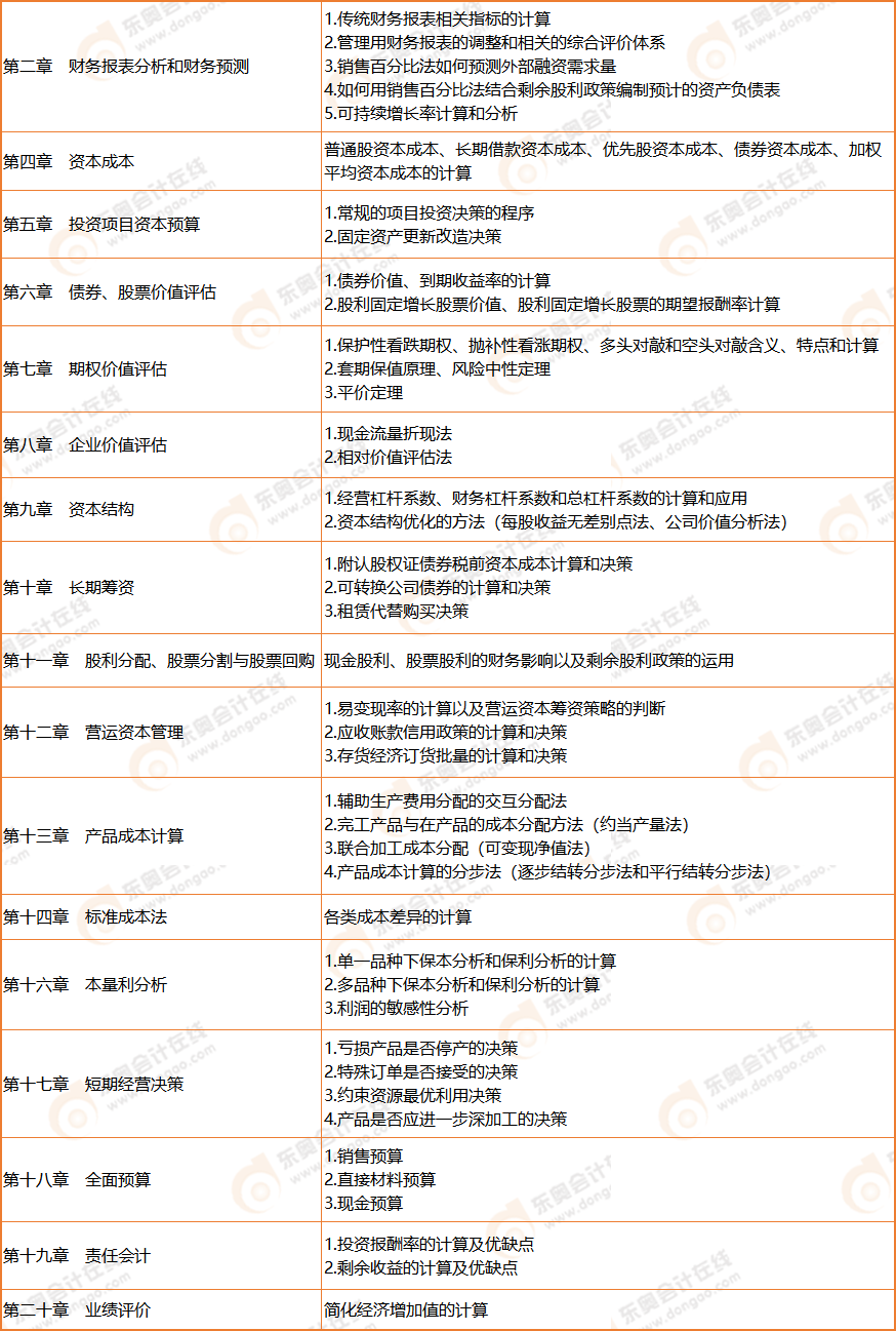完成注會(huì)考試基礎(chǔ)階段學(xué)習(xí)的考生,要盡快進(jìn)入到強(qiáng)化階段的學(xué)習(xí)備考。田明老師將習(xí)題班劃分為七大專題,分別為:管理用財(cái)務(wù)報(bào)表的編制、分析及其應(yīng)用、籌資管理、投資管理、營運(yùn)資本管理、成本計(jì)算和成本管理、本量利分析和短期經(jīng)營決策、預(yù)算管理,考生們既可以跟隨田明老師,按照專題進(jìn)行復(fù)習(xí)備考,也可以根據(jù)東奧小編整理的下表,按照章節(jié)順序進(jìn)行復(fù)習(xí)。