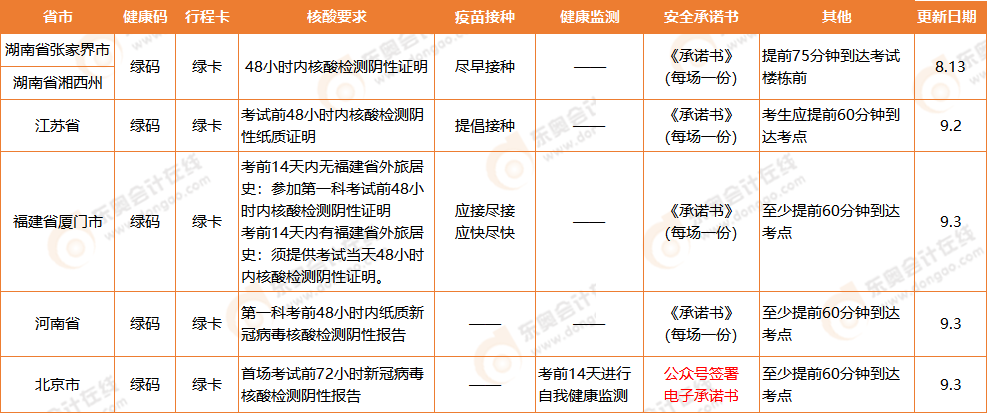 地區(qū) | 考試時(shí)間 | 政策原文 |