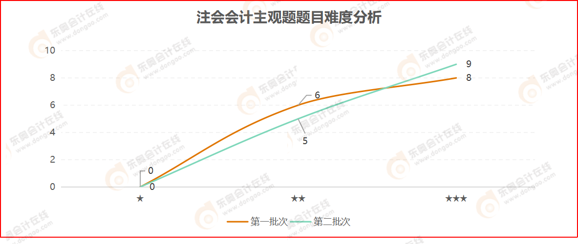 無論是第一批次考試還是第二批次考試,主觀題分?jǐn)?shù)都是50分,從2021年注會(huì)會(huì)計(jì)考試的考題數(shù)據(jù)來看,主觀題考點(diǎn)集中在2星和3星難度,考試難度較大,建議考生盡早復(fù)習(xí),夯實(shí)基礎(chǔ),為后期備考做好準(zhǔn)備。