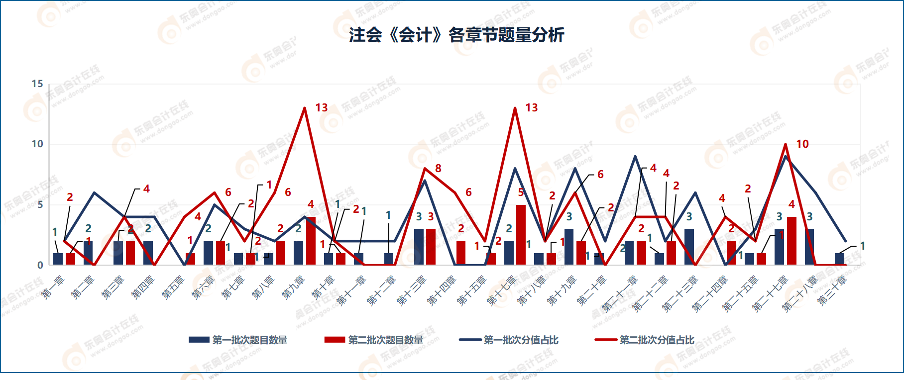 注會會計考試中,考查的考點(diǎn)集中在第六章、第八章、第九章、第十三章、第十七章、第十九章、第二十一章、第二十三章、第二十七章。其中,第九章、第十七章分值最高,為13分。