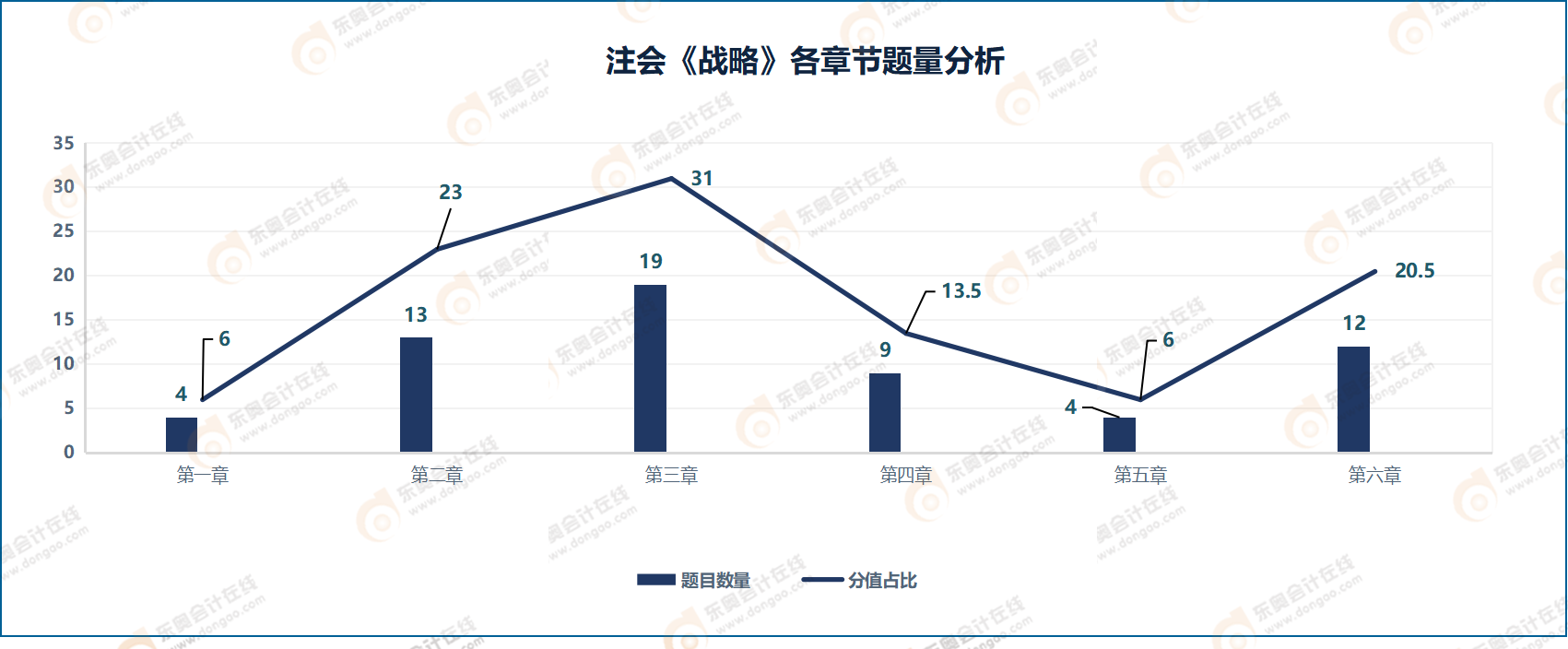 戰(zhàn)略考題主要集中在第二章、第三章、第四章、第六章。其中,第三章分值最高,為31分;第二章次之,為23分。