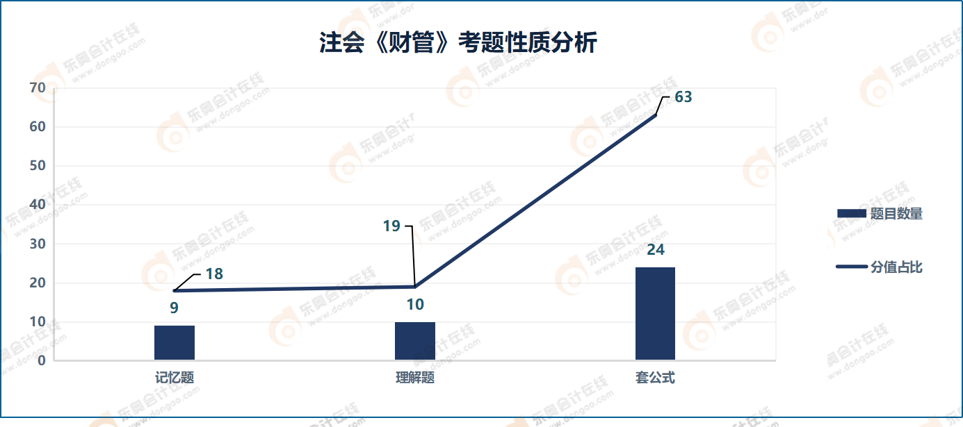 財務(wù)成本管理的考查類型比較固定,主要包含記憶題、理解題、套公式三類。在本次考試中,三種題型均有考查,其中,套公式題目的數(shù)量較多,分值較高,均超過卷面總分的50%。