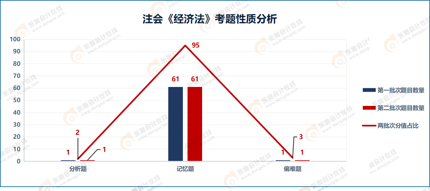 經(jīng)濟(jì)法考試以考查記憶題為主,在兩個批次的考試中,記憶題的出題數(shù)量均為61道,分值均為95分。由此也證實(shí)了,經(jīng)濟(jì)法需要記憶的內(nèi)容較多!