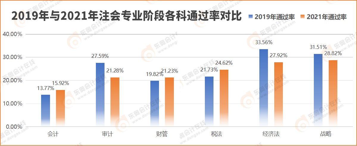 上文中小編提到的注會六科搭配方案不一定適合所有考生,畢竟每位考生的學(xué)習(xí)能力和基礎(chǔ)不同,考生可以根據(jù)自己的實際情況合理選擇報考科目。以下是2013-2021年注會專業(yè)階段各科通過率情況,大家可作為注會科目搭配的參考。