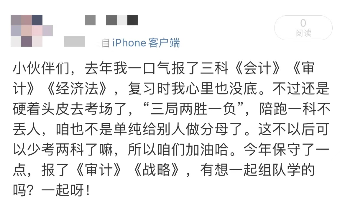 第三隊(duì)的態(tài)度是“繳什么繳?!”他們就很明顯了,就是在報(bào)名時(shí)屬于頭腦發(fā)熱,“想當(dāng)然”+“隨大流”地報(bào)了名,然后士氣昂揚(yáng)地“隨大軍”復(fù)習(xí),最后掉隊(duì)的那批“戰(zhàn)友”。如果你能夠點(diǎn)進(jìn)此文,并看到了此處,那么不妨跳到下方的“復(fù)活專區(qū)”,沒(méi)準(zhǔn)今年的注會(huì)我們還“有救”。
