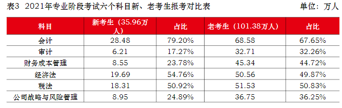 中注協(xié)發(fā)布了《2021年注冊(cè)會(huì)計(jì)師全國統(tǒng)一考試分析報(bào)告》,其中包含了新、老考生的報(bào)考對(duì)比。