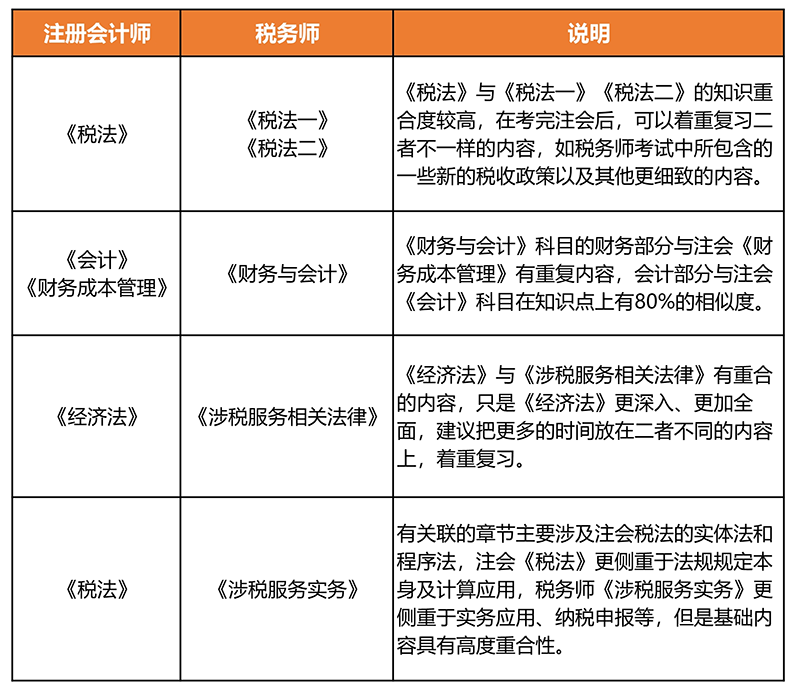 注冊(cè)會(huì)計(jì)師與稅務(wù)師“一備兩考”可操作性強(qiáng),原因就在于二者在考試內(nèi)容上有很多的相似之處,稅務(wù)師每一科都能夠和CPA的科目相對(duì)應(yīng),如果CPA內(nèi)容學(xué)習(xí)扎實(shí),那么學(xué)習(xí)稅務(wù)師內(nèi)容幾乎是“手到擒來(lái)”。