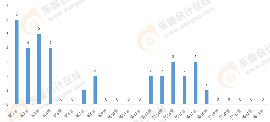在本次注會考試中,審計科目共23個章節(jié),第一章、第二章、第三章、第四章、第七章、第八章、第十三章、第十四章、第十五章、第十六章、第十七章、第十八章均有出題,其中第一章及第三章所占分值最高,分別為6分和5分。