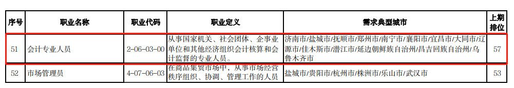 而根據人社部發(fā)布的《2022年第四季度全國招聘大于求職“最缺工”的100個職業(yè)排行》中,會計專業(yè)人員排在第68位,依舊穩(wěn)居前百。