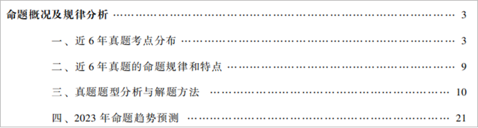 打開(kāi)《輕三》,第一部分是命題概況及規(guī)律分析。正所謂授人以魚(yú)不如授人以漁,教會(huì)考生做懂某道試題或者某套試卷,不如讓考生更深入的了解考試命題規(guī)律,摸清命題老師的出題思路,從高層面俯視每套試題。
