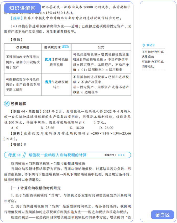 采用這種方式時(shí)要注意,記筆記雖然能一舉兩得,但前提是進(jìn)行“思考式”記錄法,而不是“抄書式”記錄法。在記錄的過程中,你要記錄有疑問的地方,要用自己的話概括課程內(nèi)容。同時(shí),還要確認(rèn)筆記的正確性,避免因?yàn)橛涗涘e(cuò)誤而誤導(dǎo)隨后的復(fù)習(xí)。想要“既要又要還要”,一般的白紙筆記本自然無法方便、快捷地滿足需求。最好的選擇,就是打開注會(huì)《輕一》,將自己的理解和備注記錄其上。