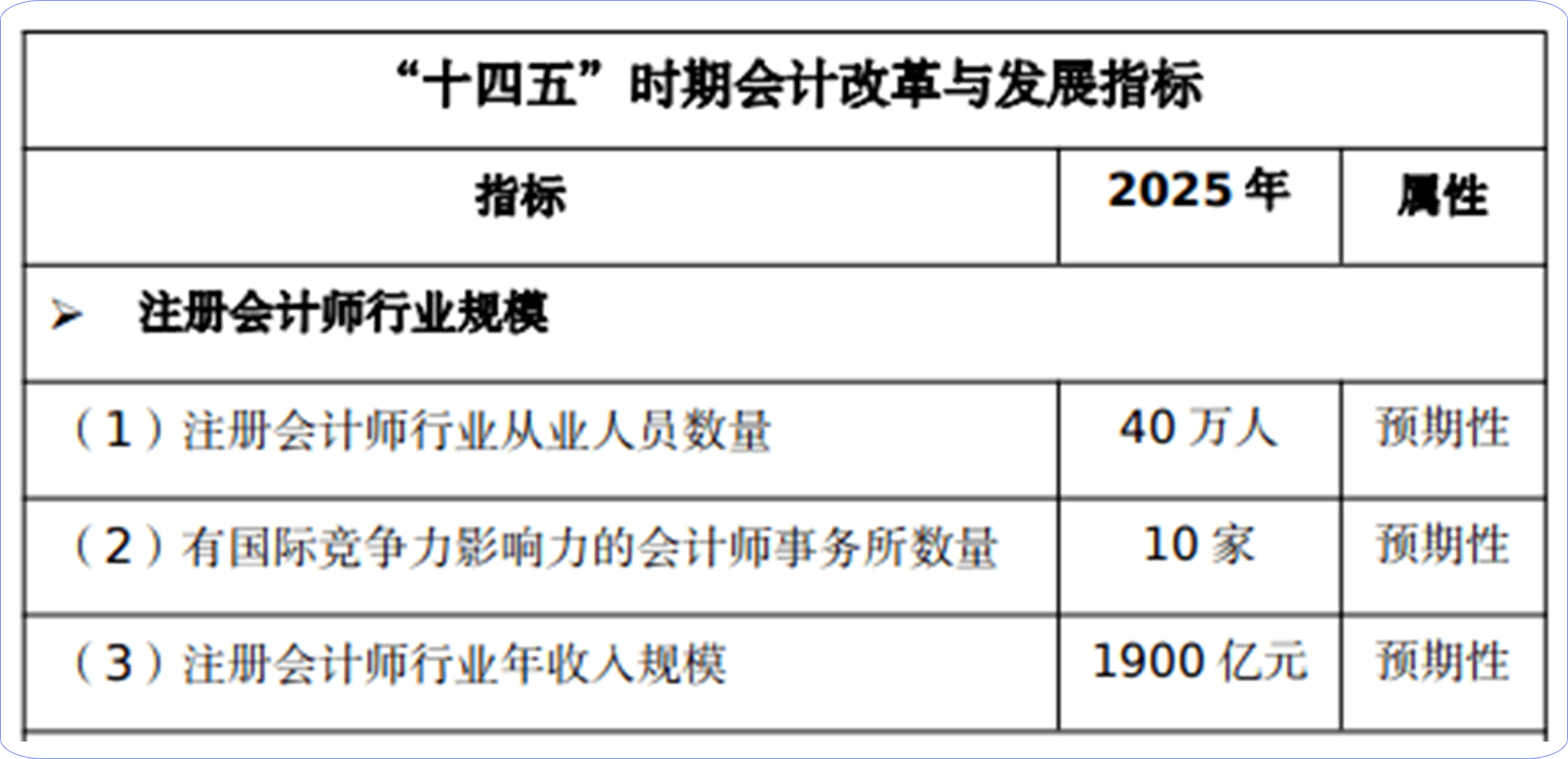 結(jié)合“十四五”規(guī)劃中(《會計改革與發(fā)展“十四五”規(guī)劃綱要》)提到的,到2025年注冊會計師行業(yè)從業(yè)人員要達到40萬的指標。