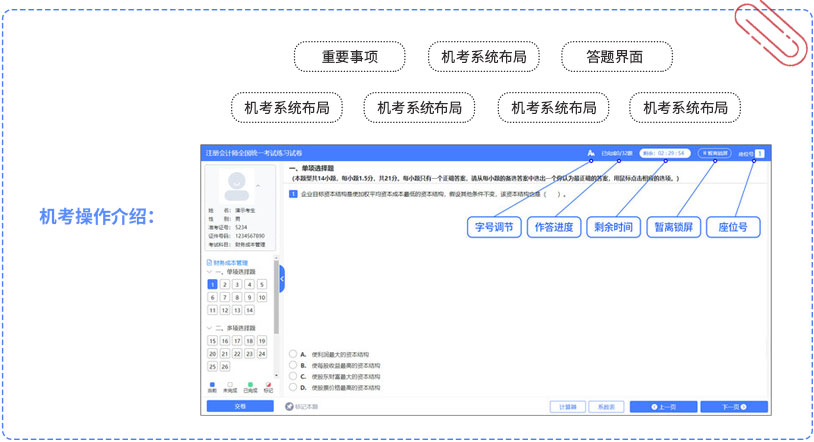 磨刀不誤砍柴工,東奧整理了計(jì)算器的選擇和操作指南,指導(dǎo)考生選購(gòu)合適的計(jì)算器,并從0到1了解計(jì)算器的基本操作。此外還根據(jù)中注協(xié)提供的機(jī)考系統(tǒng),梳理答題注意事項(xiàng),詳解界面功能。熟練使用機(jī)考工具,在考場(chǎng)上才能更好地發(fā)揮!