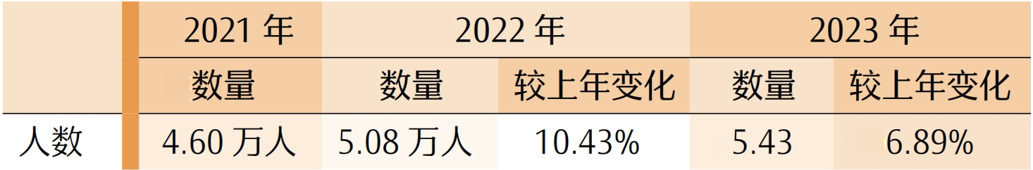2021—2023年專(zhuān)業(yè)階段考試報(bào)名(人數(shù)、科次)對(duì)照表