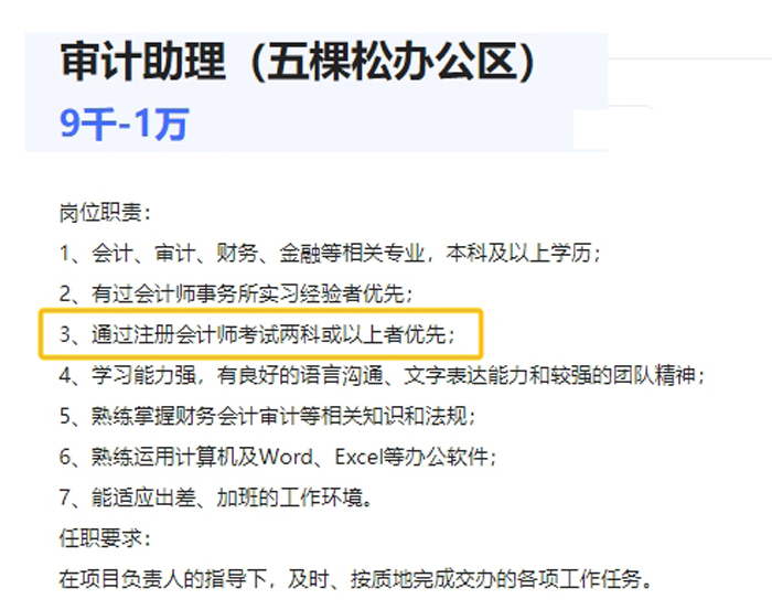 會(huì)計(jì)師事務(wù)所在校招的同時(shí)也進(jìn)行著社會(huì)招聘,對(duì)于已經(jīng)在職場(chǎng)中打拼的就業(yè)者,雖然事務(wù)所注重結(jié)果導(dǎo)向,但依舊給注會(huì)考生留有放寬條件的靈活空間,注會(huì)依舊是財(cái)稅崗位實(shí)力證明的加分項(xiàng)。