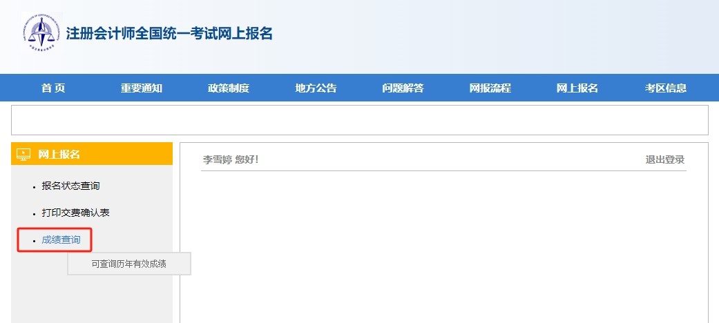 第4步:登錄成功后,點擊左側“成績查詢”按鈕。