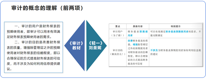 點睛解讀+磨耳朵教學(xué)之下如果還是無法理解記憶,那也不要急,第三招看圖說話來教你。將知識點用圖示的方式表示出來,看圖+聽課加深理解、強化記憶,劉老師自創(chuàng)的“橫縱坐標(biāo)系”“經(jīng)典三角形”“審計左右手”等常用知識結(jié)構(gòu),在審計各章節(jié)的運用中里貫穿始終。