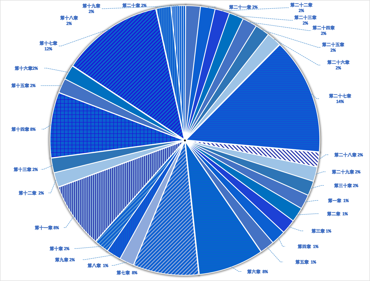 以平均分值總體占比的餅狀圖來看,可以更為直觀地展示考題的分布情況。點擊查看大圖