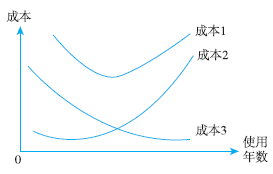 【解析】成本1是平均年成本線,成本2是平均年運行成本線,成本3是平均年持有成本線,固定資產(chǎn)經(jīng)濟壽命是使固定資產(chǎn)的平均年成本最小的那一使用年限。