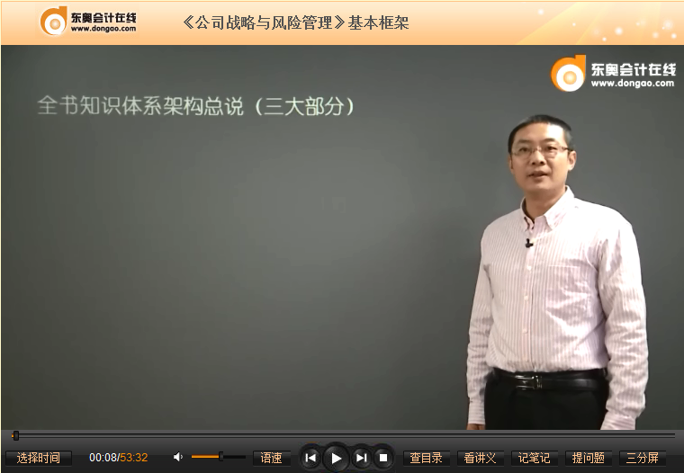 以下是東奧名師呂鵬2013年注冊(cè)會(huì)計(jì)師考試基礎(chǔ)班免費(fèi)課件:《公司戰(zhàn)略與風(fēng)險(xiǎn)管理》基本框架免費(fèi)試聽(tīng)課程: