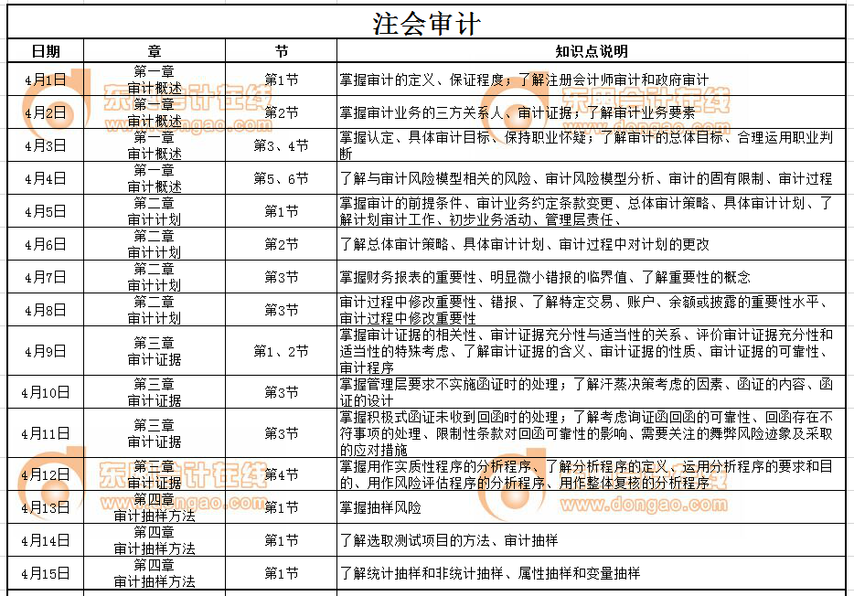 2019年注冊(cè)會(huì)計(jì)師4月《審計(jì)》科目每日學(xué)習(xí)計(jì)劃