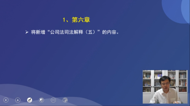 第六章會根據(jù)“公司法司法解釋(五)”進(jìn)行調(diào)整,對考生的難度不是特別大,一個(gè)小時(shí)左右就能看懂,由于是新增,可以按照2019年的課件先進(jìn)行學(xué)習(xí)。