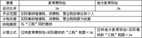 教育費(fèi)附加和地方教育附加是對繳納增值稅、消費(fèi)稅、營業(yè)稅的單位和個(gè)人,就其實(shí)際繳納的稅額為計(jì)稅依據(jù)征收的一種附加費(fèi)。