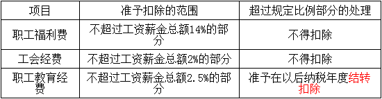 (3)這三項(xiàng)費(fèi)用不是采用計(jì)提或預(yù)提的方法支出,而采用的是“據(jù)實(shí)支出、限額控制”的方法。其中職工教育經(jīng)費(fèi)超支的,可結(jié)轉(zhuǎn)下年,用以后年度未用完的限額扣除。