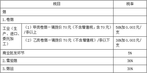 2009年5月1日以后卷煙的稅目稅率狀況: