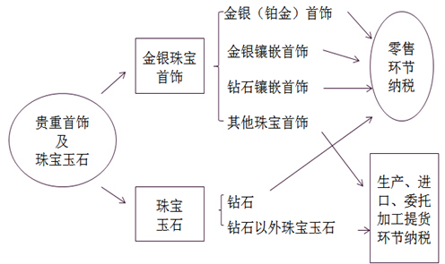 金、銀、金基、銀基、鉑金、鉆石、鉆石飾品等首飾和飾品在零售環(huán)節(jié)納稅,稅率5%;其他與金基、銀基、鉑金、鉆無關(guān)的貴重首飾及珠寶玉石在生產(chǎn)(出廠)、進口、委托加工環(huán)節(jié)納稅,稅率為10%。