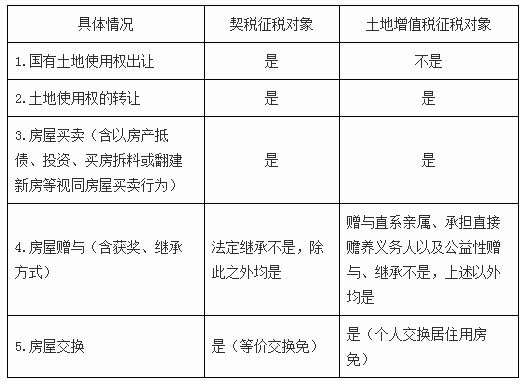 具體情況契稅征稅對(duì)象土地增值稅征稅對(duì)象
