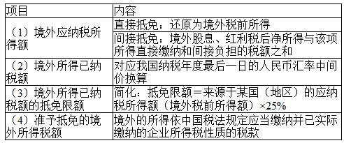1.含義:境外所得在境外繳納的所得稅 額在我國(guó)應(yīng)納稅額中抵免