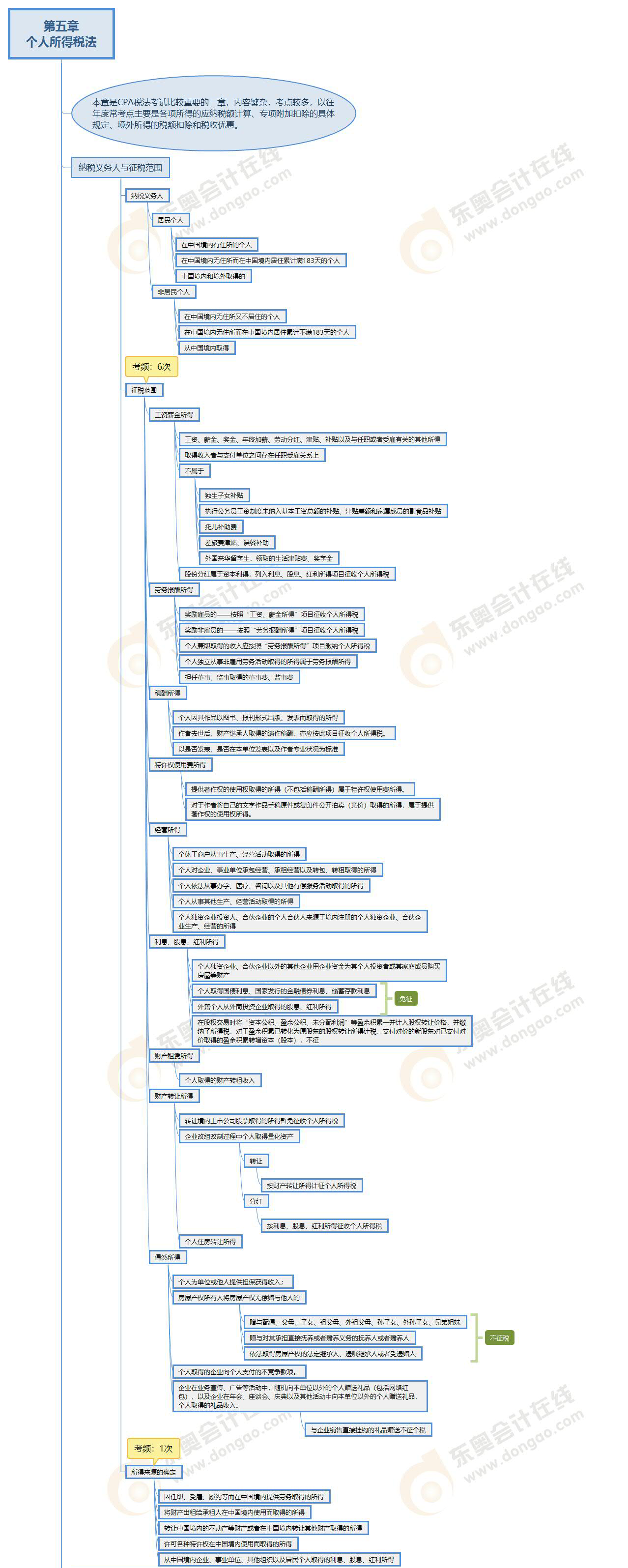 在CPA專業(yè)階段考試中,稅法科目難度適中,教材第五章——個人所得稅法是重點(diǎn)章節(jié),本章考點(diǎn)較多且雜,東奧會計(jì)在線為大家整理了2022年CPA《稅法》第五章思維導(dǎo)圖(第一部分)及章節(jié)練習(xí)題,快來學(xué)習(xí)吧!