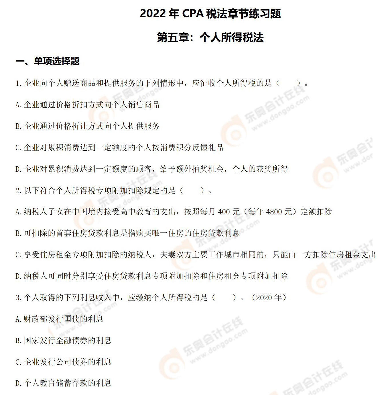 「 CPA稅法第五章章節(jié)練習(xí)題 」