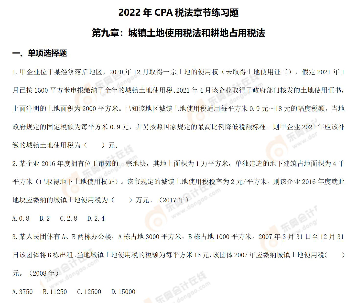 注:章節(jié)練習(xí)題出自東奧名師劉穎老師的2022年《稅法》基礎(chǔ)精講班課程講義