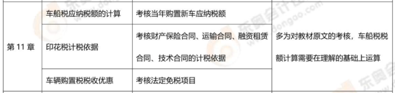 車輛購置稅主要考查稅率、計(jì)稅依據(jù)和應(yīng)納稅額的計(jì)算,易和增值稅、消費(fèi)稅、關(guān)稅聯(lián)合出主觀題;車船稅主要考查應(yīng)納稅額的計(jì)算和稅收優(yōu)惠,也可與其他稅種聯(lián)合出題;印花稅主要考查征稅項(xiàng)目的具體規(guī)定和稅額計(jì)算及計(jì)稅金額的規(guī)定。
