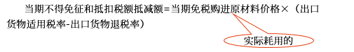 當(dāng)期不得免征和抵扣稅額=當(dāng)期出口貨物離岸價(jià)格×外匯人民幣折合率×(出口貨物適用稅率-出口貨物退稅率)-當(dāng)期不得免征和抵扣稅額抵減額