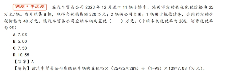 車輛購置稅應(yīng)納稅額的計算_2025注會《稅法》考點搶先學(xué)